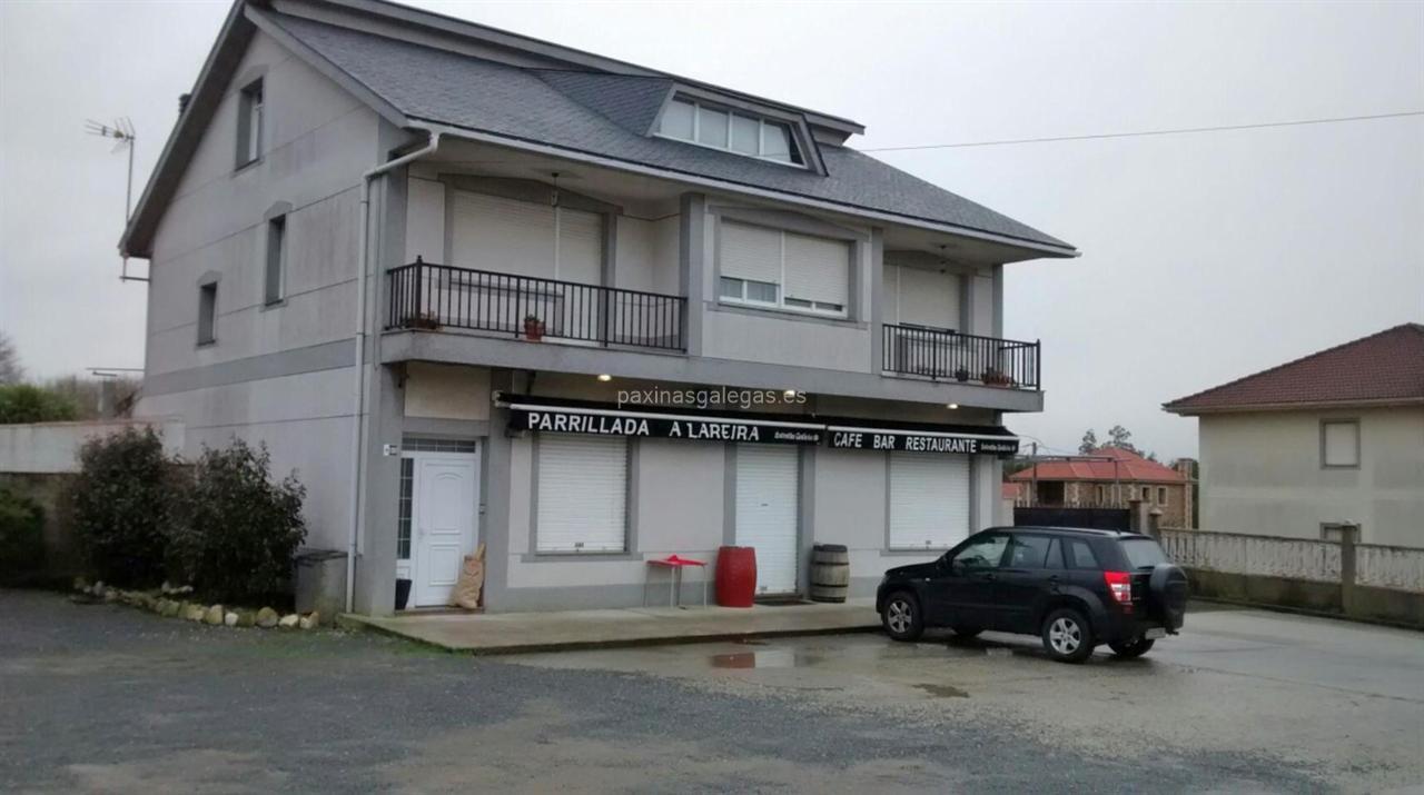 Además, en la parte visual la imagen principal identificativa de A Lareira, el visualizador de streetview con la vista de la calle Avda. de Razo, 120 - 15100 y sus cercanias.
