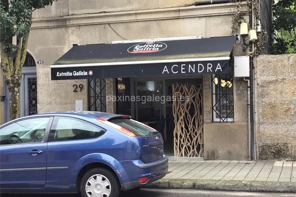Además, en la parte visual la imagen principal identificativa de Acendra Restauración, el visualizador de streetview con la vista de la calle Camilo Veiga, 29 Bajo - BOUZAS - 36208 y sus cercanias.