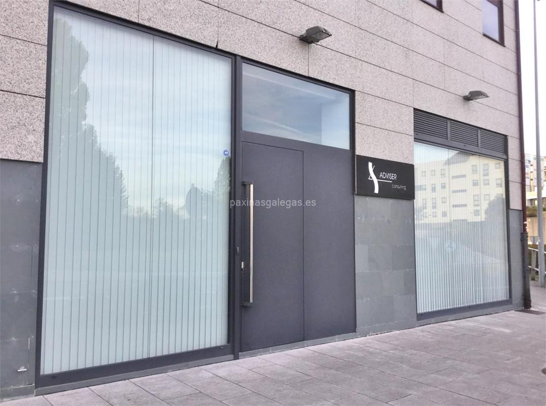 Además, en la parte visual la imagen principal identificativa de Adviser Consulting, el visualizador de streetview con la vista de la calle Antón Vilar Ponte, 2 Loc. 2 - 15702 y sus cercanias.