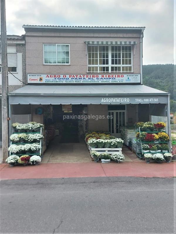 Además, en la parte visual la imagen principal identificativa de Agro O Patateiro, el visualizador de streetview con la vista de la calle Muñoz Calero, 30 Bajo - 32400 y sus cercanias.