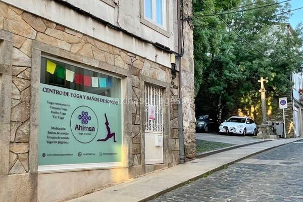 Además, en la parte visual la imagen principal identificativa de Ahimsa, el visualizador de streetview con la vista de la calle Bonaval, 25 Bajo - 15703 y sus cercanias.