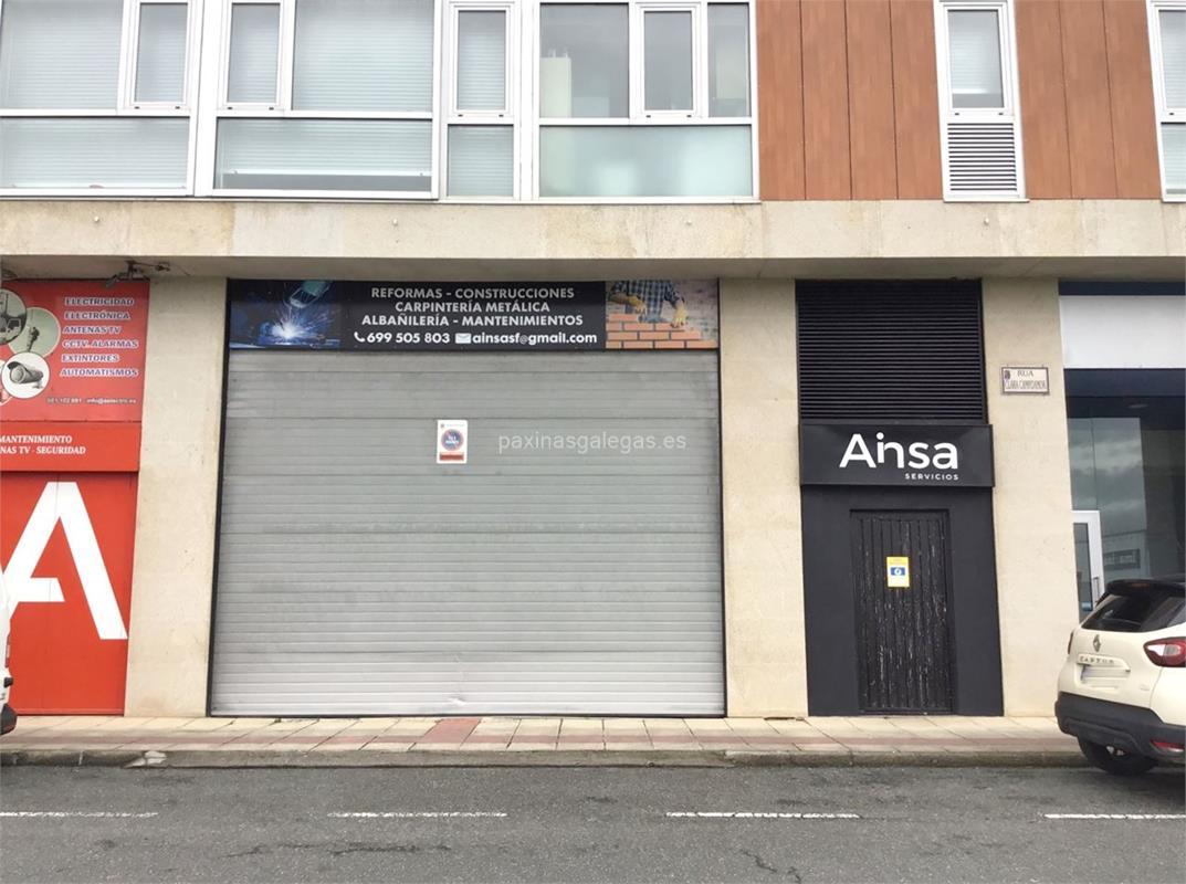 Los datos de contacto: el teléfono de Ainsa (principal) asi como la calle y dirección completa (Clara Campoamor, s/n - 15570) dentro de Narón o la ubicación gps en el mapa (tambien como llegar) y el correo electrónico (email) para ponerse en contacto can Ainsa a través de email.