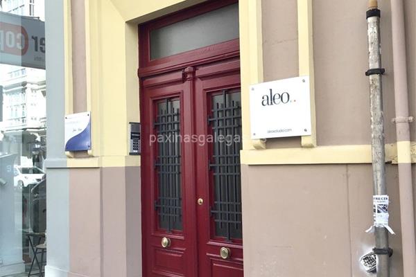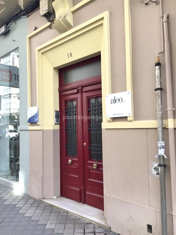 Además, en la parte visual la imagen principal identificativa de Aleo Estudio, el visualizador de streetview con la vista de la calle Teresa Herrera, 10 1º - 15004 y sus cercanias.