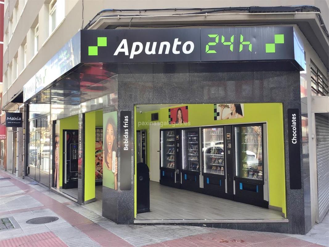 En esta ficha web podrá encontrar las actividades desarrolladas por Apunto 24h en A Coruña asi como una descripción con la información más relevante. A mayores podrá consultar los otros 38 registros disponibles para puntos de vending en A Coruña.