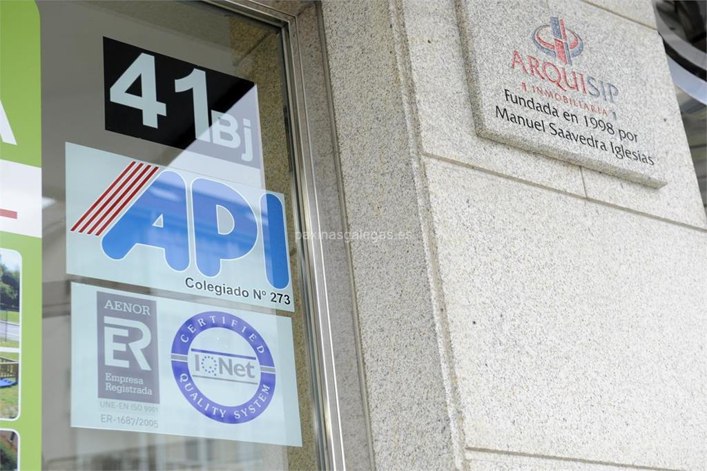 Además, en la parte visual se muestra el logotipo corporativo, la imagen principal identificativa de Arquisip, el visualizador de streetview con la vista de la calle Avda. Rosalía de Castro, 41 Bajo - MILLADOIRO - 15895 y sus cercanias. 20 imágenes adicionales relativas a los productos, trabajos, servicios de Arquisipy un video empresarial de presentación.