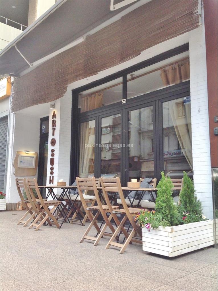 Además, en la parte visual la imagen principal identificativa de Art & Shushi, el visualizador de streetview con la vista de la calle Juan Flórez, 52 Bajo 2 - 15004 y sus cercanias.
