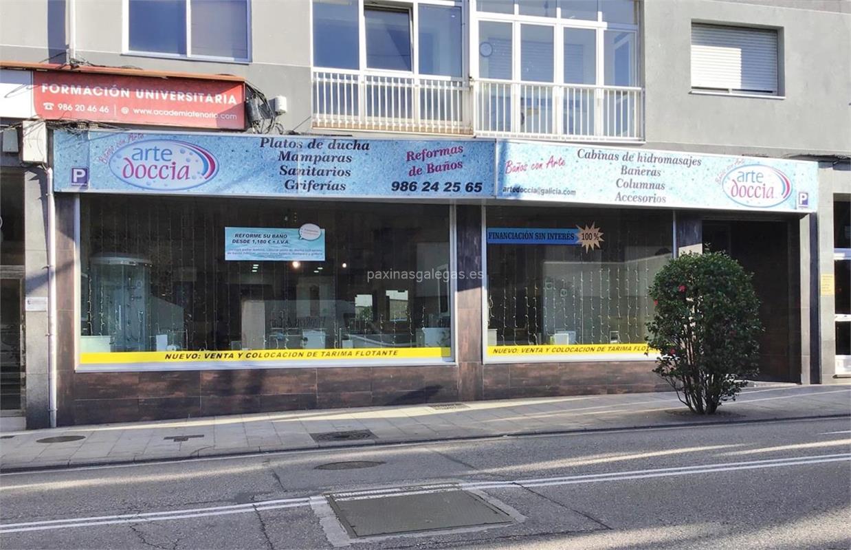 Además, en la parte visual la imagen principal identificativa de Arte Doccia - Central, el visualizador de streetview con la vista de la calle Coruña, 72 Bajo - 36208 y sus cercanias.