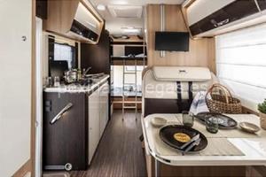 Alquiler de autocaravana modelo McLouis Glamys 220 con capacidad para 6 personas y todas la comodidades; aire acondicionado, calefacción, 2 televisores, toldo, mesas y sillas de camping, garaje con capacidad para motocicletas, equipo multimedia con navegador y retrocámara, amplio baño, placa solar, menaje.