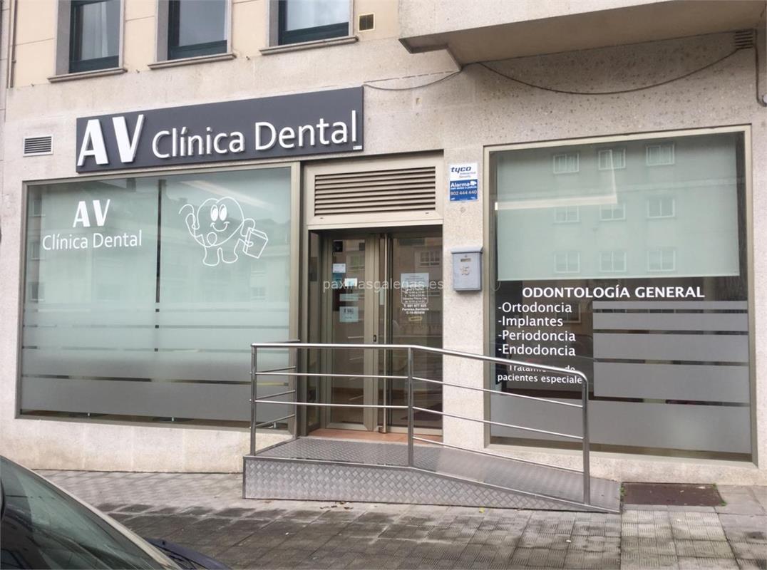 Además, en la parte visual se muestra el logotipo corporativo, la imagen principal identificativa de AV Clínica Dental, el visualizador de streetview con la vista de la calle Trva. Cacheiras, 12 Loc. 15 - 15886 y sus cercanias. 0 imágenes adicionales relativas a los productos, trabajos, servicios de AV Clínica Dental.
