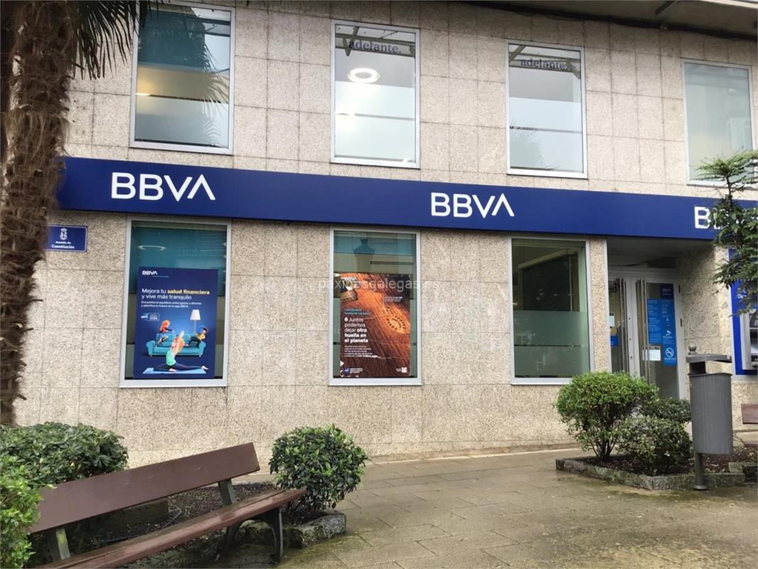 Además, en la parte visual la imagen principal identificativa de BBVA, el visualizador de streetview con la vista de la calle Avda. da Constitución, 1 - 36860 y sus cercanias.