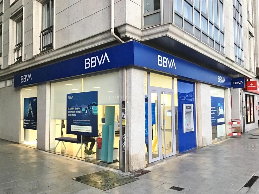 Además, en la parte visual la imagen principal identificativa de BBVA, el visualizador de streetview con la vista de la calle Avda. da Mariña, 28-29 - 15160 y sus cercanias.