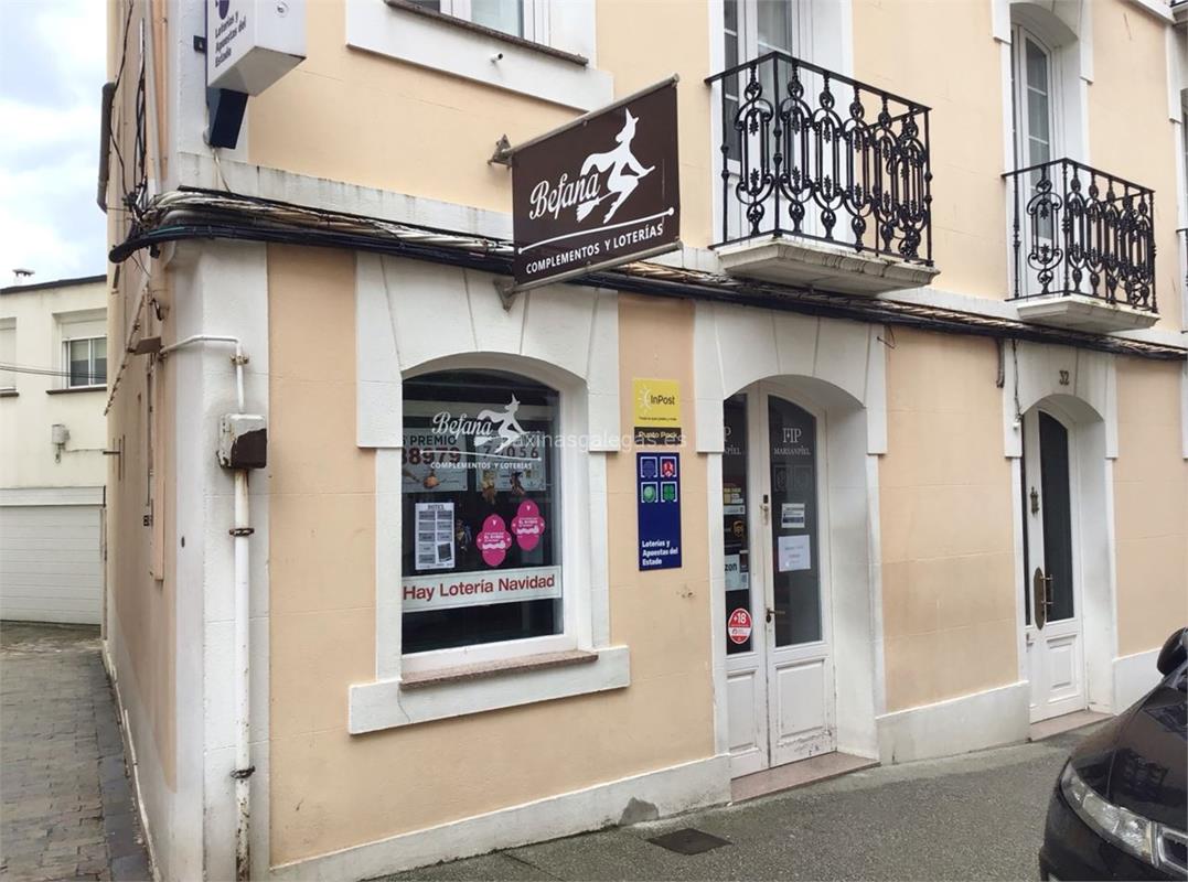 Además, en la parte visual la imagen principal identificativa de Befana, el visualizador de streetview con la vista de la calle Avda. da Mariña, 32 - 27780 y sus cercanias.