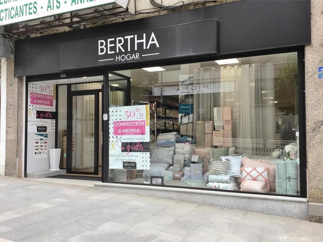 Tambien podrá encontrar el horario de atención apertura. Los datos de contacto: el teléfono de Bertha Hogar (principal) asi como la calle y dirección completa (Rúa de Urzáiz, 124 Bajo - 36205) dentro de Vigo zona (San Roque - A Doblada) o la ubicación gps en el mapa (tambien como llegar), enlaces a la pagina web (web franquicia, instagram, facebook, pinterest) y el correo electrónico (email) para ponerse en contacto can Bertha Hogar a través de email.