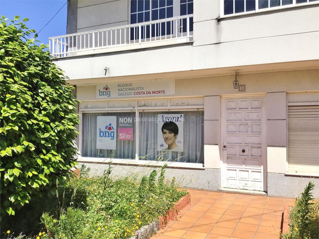 Sede del BNG - Bloque Nacionalista Galego en Corcubión. O nacionalismo é a resposta contra unha situación de dependencia económica, opresión cultural e política de Galiza que imposibilita a transformación e benestar da sociedade. Defende un programa para a gran maioría da sociedade galega.