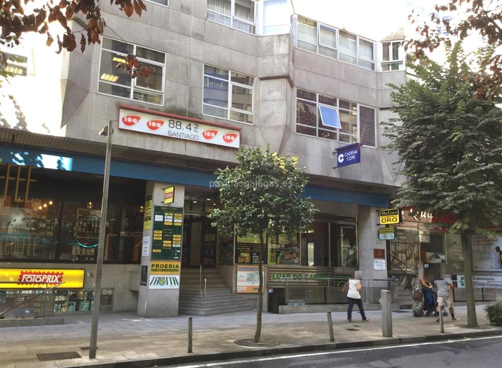 Además, en la parte visual la imagen principal identificativa de Cadena Cope, el visualizador de streetview con la vista de la calle Xeneral Pardiñas, 14-16 1ª Pl. (Edif. Fenosa) - 15701 y sus cercanias.