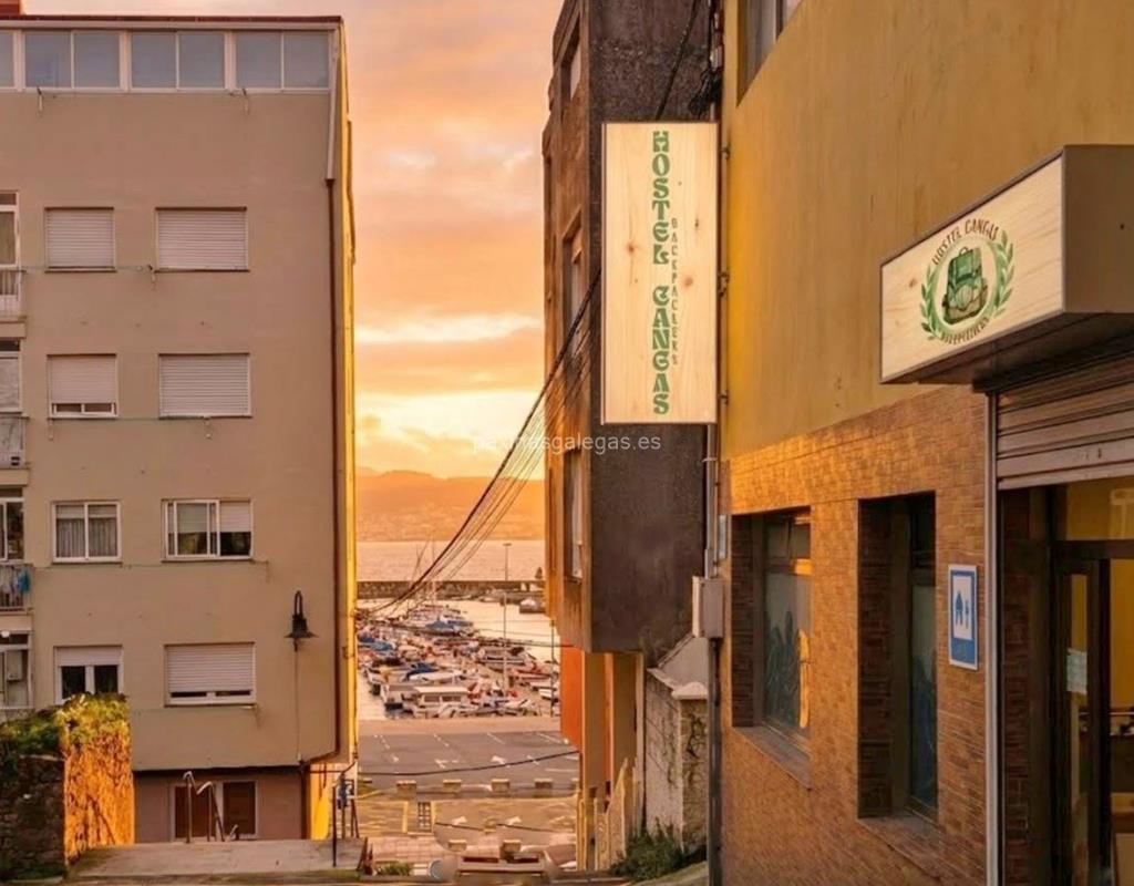 Además, en la parte visual la imagen principal identificativa de Cangas BackPackers, el visualizador de streetview con la vista de la calle Seixo, 18 - 36940 y sus cercanias.