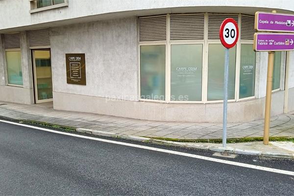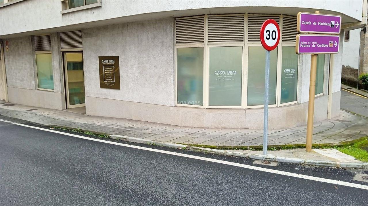 Además, en la parte visual la imagen principal identificativa de Carpe Diem, el visualizador de streetview con la vista de la calle Sancha Rodríguez, 2 Bajo - 15300 y sus cercanias.
