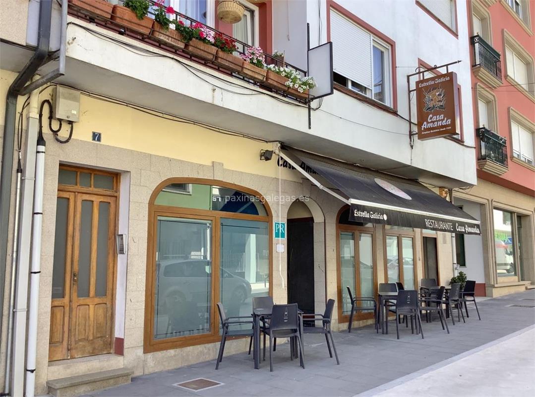 Restaurante de cocina tradicional con especialidad en carne á pedra. Raciones, menús concertados... Pulpo á feira, calamares, setas con almejas, grelos con langostinos, revuelto de espinacas con jamón, navajas a la plancha, bacalao a la gallega, solomillo al porto con setas, cordero estilo Amanda, caldo gallego... Más de 91 años en el sector (desde 1934).