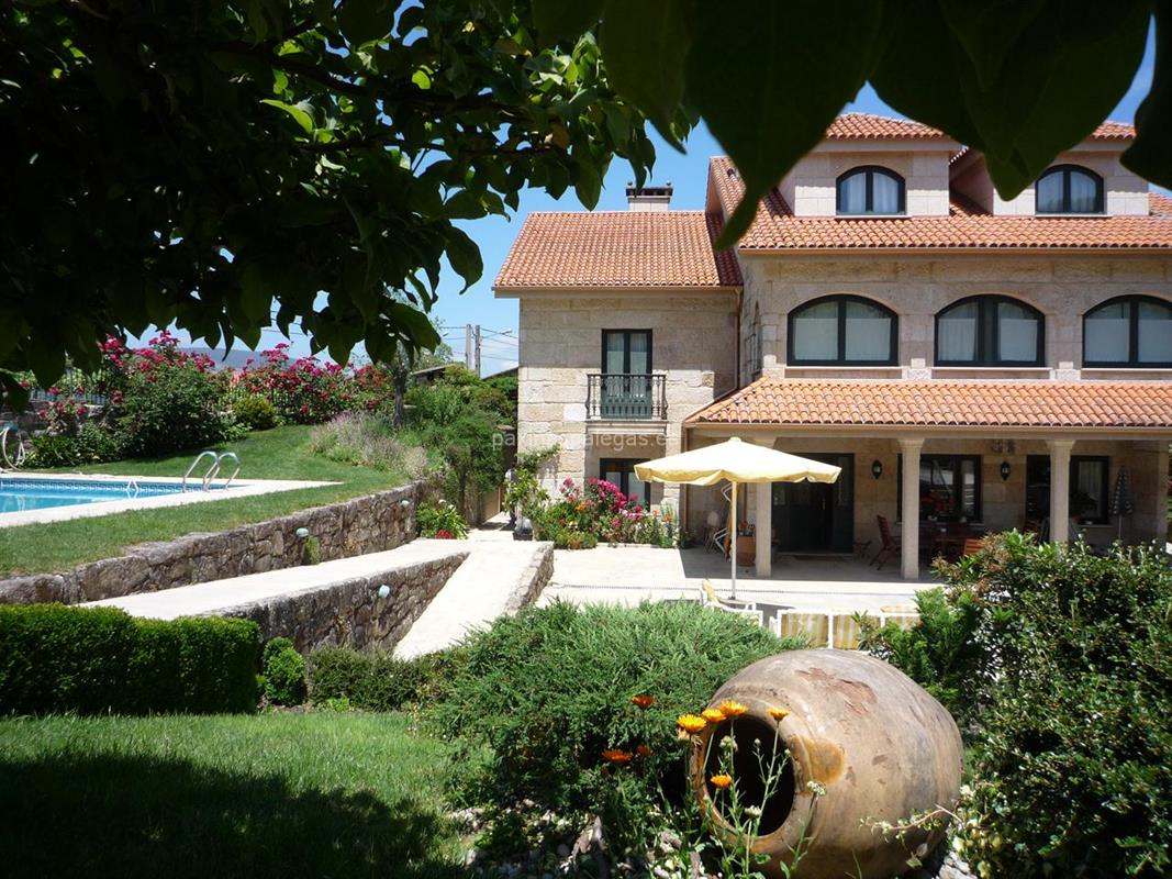 Dispone de 7 habitaciones dobles con baño incorporado, 1 apartamento, salón con chimenea, comedor, música ambiental, piscina, zona ajardinada, cama supletoria y terraza. Paseos a caballo, rafting, senderismo. Aeropuerto de Peinador a 15 km. Más de 28 años en el sector (desde 1997).