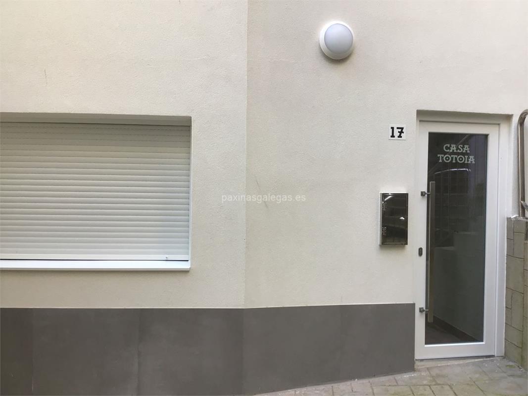 Además, en la parte visual la imagen principal identificativa de Casa Totoia , el visualizador de streetview con la vista de la calle A Praia, 17 - 15113 y sus cercanias.