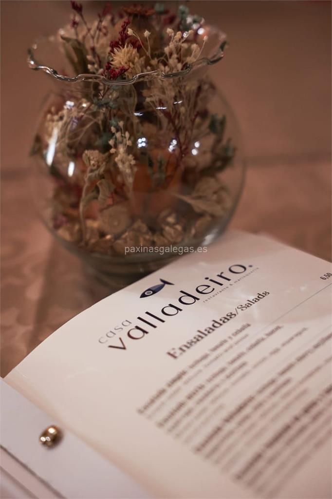 Además, en la parte visual se muestra el logotipo corporativo, la imagen principal identificativa de Casa Valladeiro, el visualizador de streetview con la vista de la calle Porto, 7 - 36780 y sus cercanias. 10 imágenes adicionales relativas a los productos, trabajos, servicios de Casa Valladeiro.