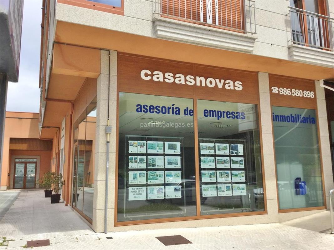Además, en la parte visual la imagen principal identificativa de Casas Novas, el visualizador de streetview con la vista de la calle Barrio do Campo, 19 Bajo - 36540 y sus cercanias.
