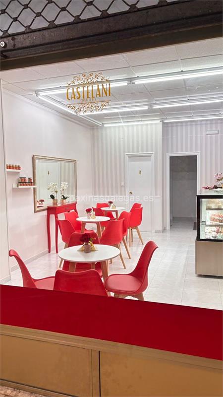 Tambien podrá encontrar el horario de atención apertura. Los datos de contacto: el teléfono de Castelani (principal) asi como la calle y dirección completa (Calvo Sotelo, 42 Loc. 8 - Galerías 2000 - 36680) dentro de A Estrada o la ubicación gps en el mapa (tambien como llegar), enlaces a la pagina web (instagram).