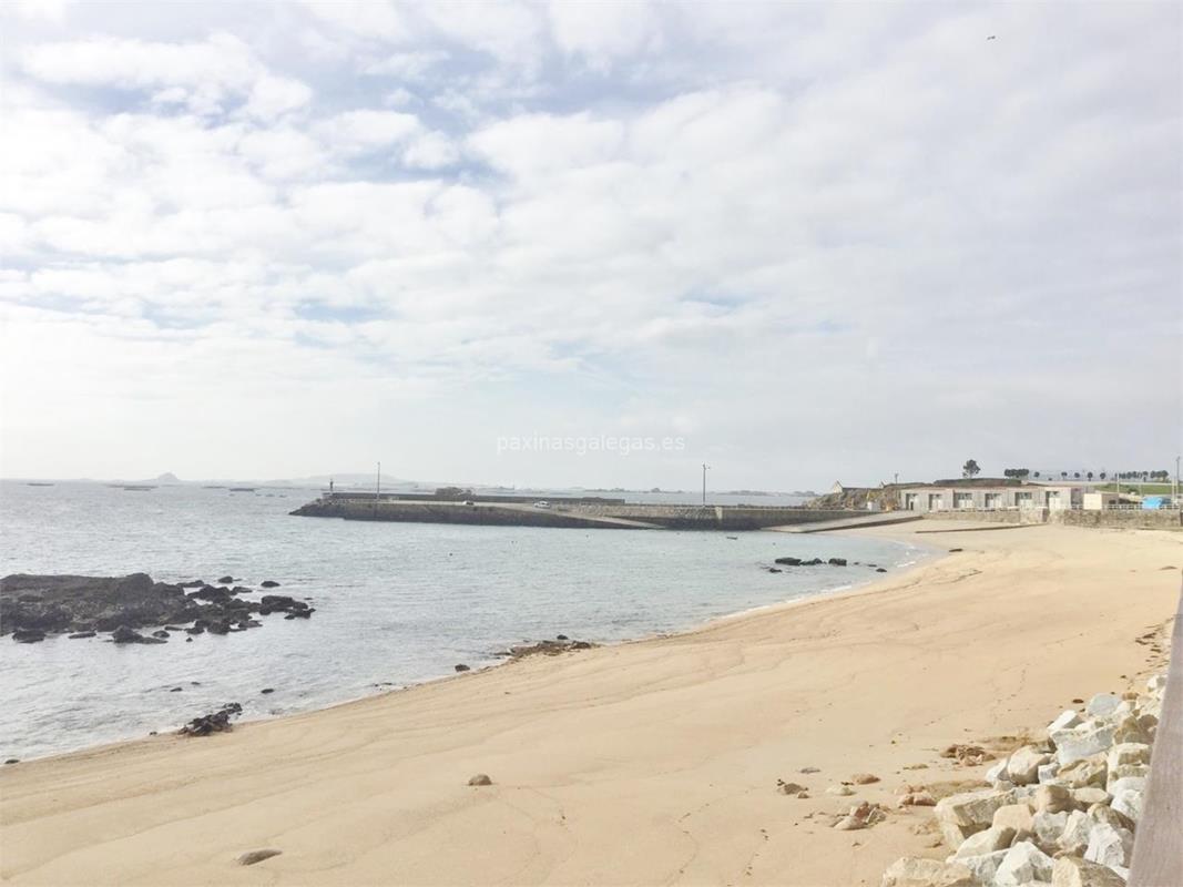 Pequeña playa situada en la zona urbana, a continuación del puerto de Castiñeiras. Cuenta con arena dorada y aguas tranquilas. Paseo marítimo a lo largo de todo el arenal y buena panorámica de la Ría. El espigón en cabeza de playa, así como los islotes, se conocen como Pta. de Maio e Isla Maio.
