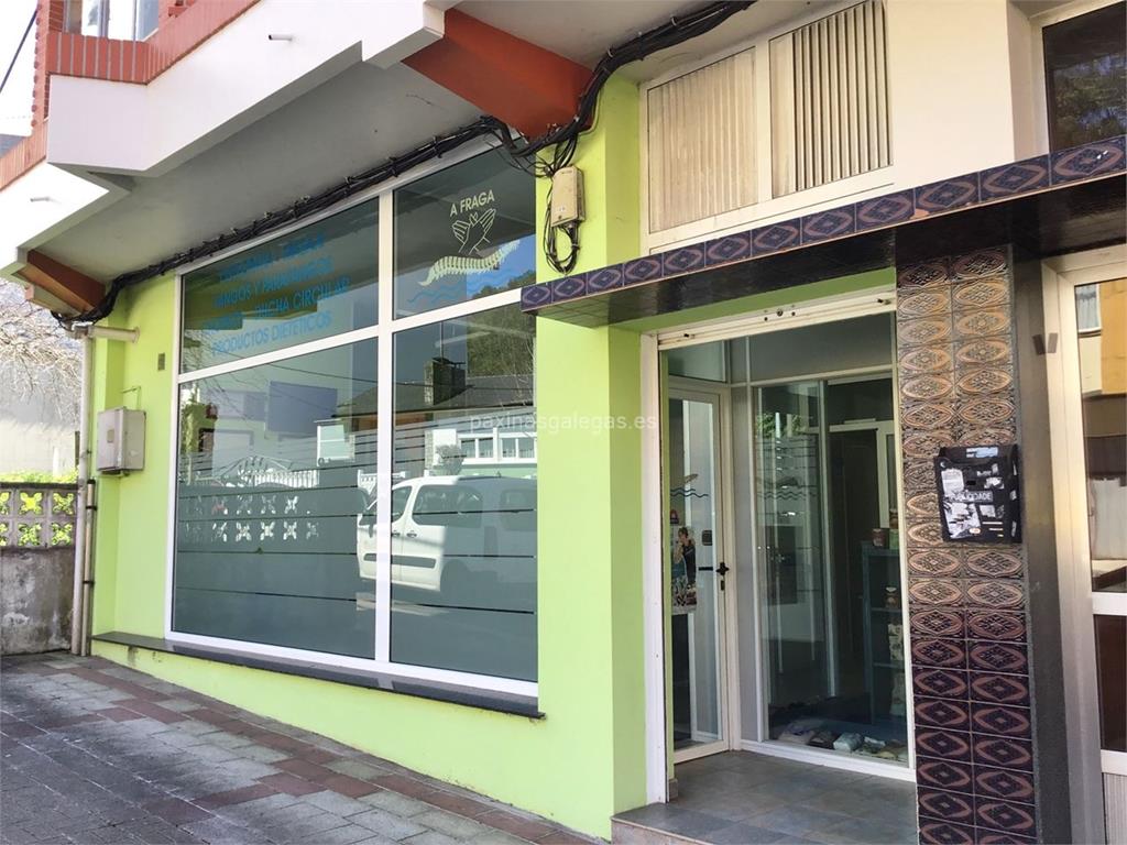 Además, en la parte visual se muestra el logotipo corporativo, la imagen principal identificativa de Centro de Osteopatía y Masaje A Fraga, el visualizador de streetview con la vista de la calle Ctra. de la Fraga, 27 - 15500 y sus cercanias. 6 imágenes adicionales relativas a los productos, trabajos, servicios de Centro de Osteopatía y Masaje A Fraga.