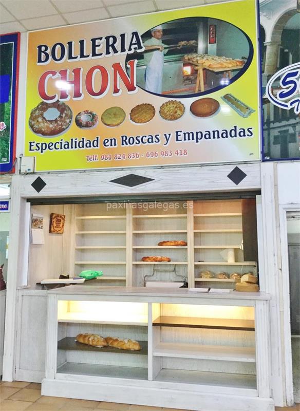 Además, en la parte visual la imagen principal identificativa de Chon Bollería, el visualizador de streetview con la vista de la calle Malecón de Cadarso, s/n (Plaza de Abastos) Plta. alta Pto. 4 - 15200 y sus cercanias.