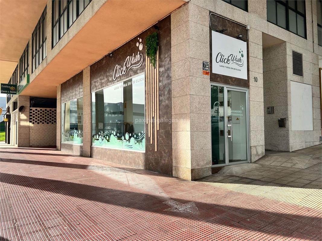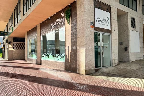 Además, en la parte visual la imagen principal identificativa de Click Wash, el visualizador de streetview con la vista de la calle Teixugueiras, 10 Local 2 - 36212 y sus cercanias.