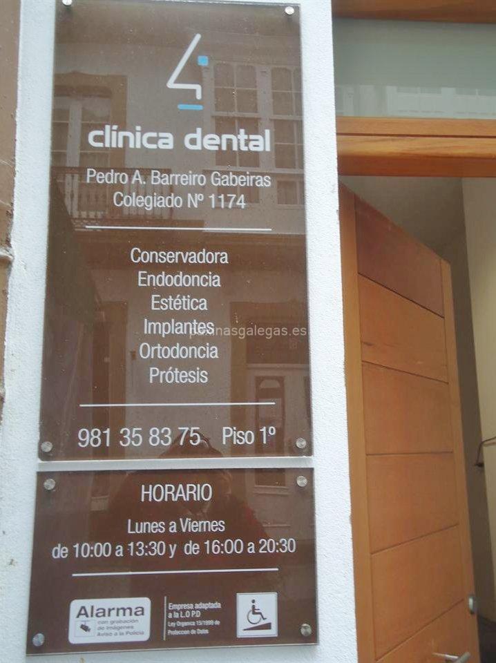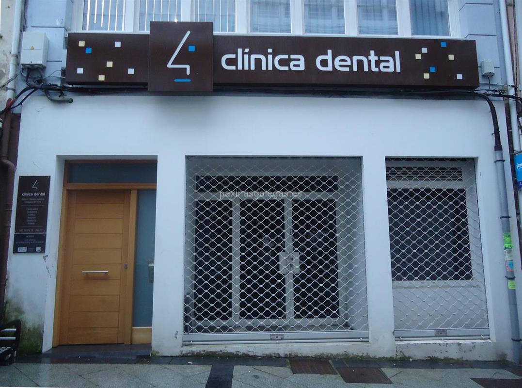 Además, en la parte visual se muestra el logotipo corporativo, la imagen principal identificativa de Clínica Dental 4, el visualizador de streetview con la vista de la calle Dolores, 6 1º - 15402 y sus cercanias. 20 imágenes adicionales relativas a los productos, trabajos, servicios de Clínica Dental 4y un video empresarial de presentación.