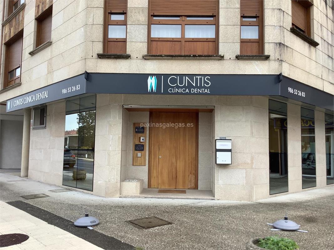 Además, en la parte visual la imagen principal identificativa de Clínica Dental Cuntis, el visualizador de streetview con la vista de la calle Circunvalación Don Aurelio, 80 Bajo - 36670 y sus cercanias.