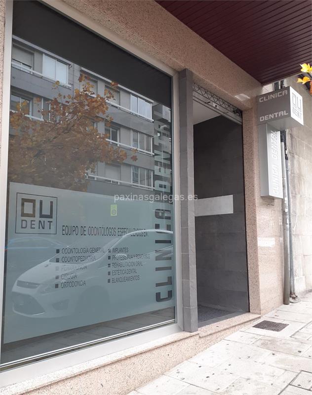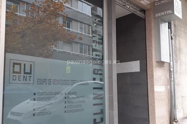 Además, en la parte visual se muestra el logotipo corporativo, la imagen principal identificativa de Clínica Dental Oudent, el visualizador de streetview con la vista de la calle Avda. Universidade, 1 Bis - 32005 y sus cercanias. 10 imágenes adicionales relativas a los productos, trabajos, servicios de Clínica Dental Oudent.