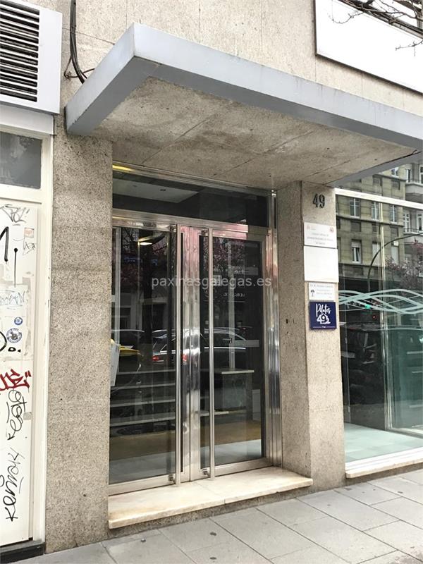 Además, en la parte visual la imagen principal identificativa de Colegio Oficial de Administradores de Fincas de Galicia, el visualizador de streetview con la vista de la calle Juan Flórez, 49 2º Dcha. - 15004 y sus cercanias.