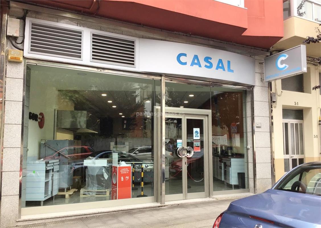 Tambien podrá encontrar el horario de atención apertura. Los datos de contacto: el teléfono de Comercial Casal (principal) asi como la calle y dirección completa (Mondoñedo, 47-49 Bajo - 27004) dentro de Lugo o la ubicación gps en el mapa (tambien como llegar), enlaces a la pagina web (web empresa, instagram, facebook, x) y el correo electrónico (email) para ponerse en contacto can Comercial Casal a través de email.