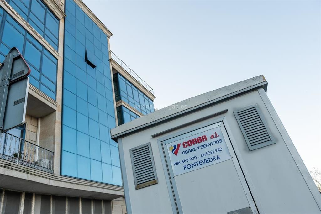 Además, en la parte visual se muestra el logotipo corporativo, la imagen principal identificativa de Corba, S.L., el visualizador de streetview con la vista de la calle Carballo do Pazo, 35 - 36143 y sus cercanias. 20 imágenes adicionales relativas a los productos, trabajos, servicios de Corba, S.L..