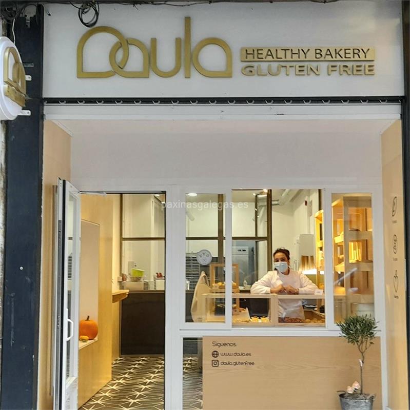 Además, en la parte visual la imagen principal identificativa de Daula Healthy Bakery, el visualizador de streetview con la vista de la calle Rosalía de Castro, 32 Bajo - 36001 y sus cercanias.
