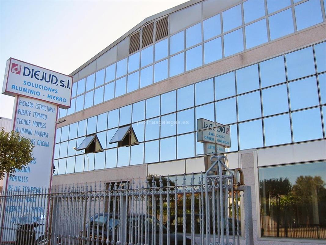 Además, en la parte visual se muestra el logotipo corporativo, la imagen principal identificativa de Diejud, el visualizador de streetview con la vista de la calle Polígono Industrial do Salnés, Central, 5 - 36636 y sus cercanias. 20 imágenes adicionales relativas a los productos, trabajos, servicios de Diejud.