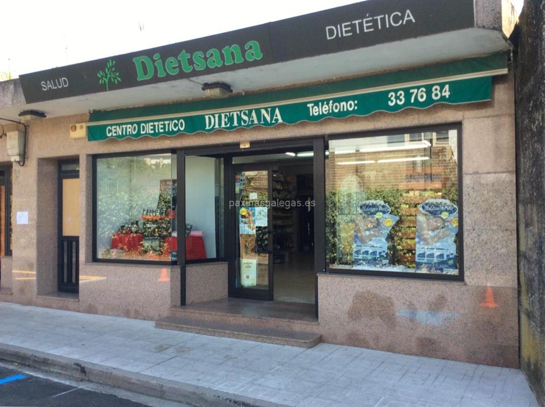 Tambien podrá encontrar el horario de atención apertura. Los datos de contacto: el teléfono de Dietsana (principal) asi como la calle y dirección completa (Cando, 15 Local Dcha. - 36400) dentro de Porriño o la ubicación gps en el mapa (tambien como llegar), enlaces a la pagina web (instagram, facebook) y el correo electrónico (email) para ponerse en contacto can Dietsana a través de email.