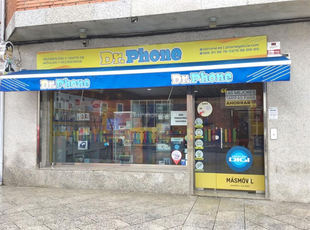 Tambien podrá encontrar el horario de atención apertura. Los datos de contacto: el teléfono de Dr. Phone (principal) asi como la calle y dirección completa (Pza. do Concello, 9 - 36470) dentro de Salceda o la ubicación gps en el mapa (tambien como llegar), enlaces a la pagina web (web empresa, instagram, facebook) y el correo electrónico (email) para ponerse en contacto can Dr. Phone a través de email.