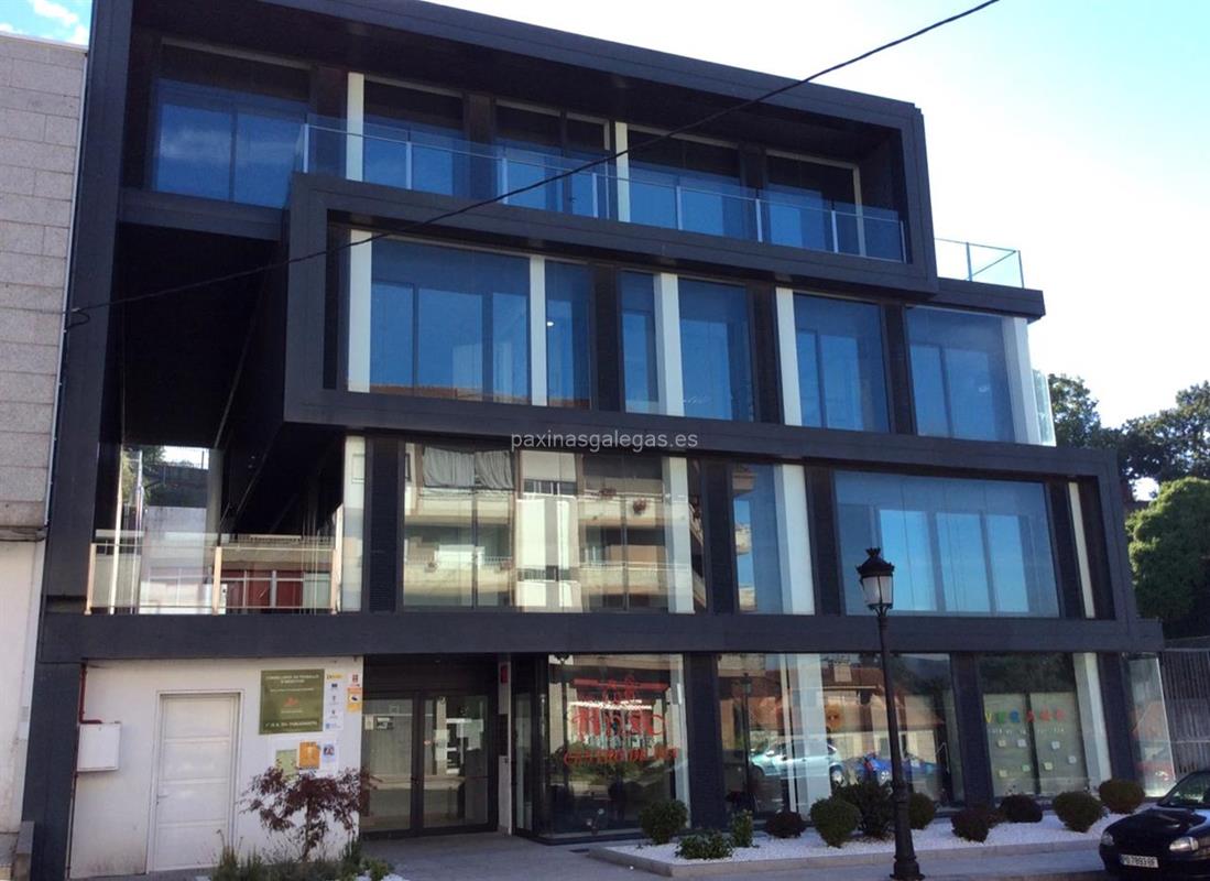 Además, en la parte visual la imagen principal identificativa de Edificio Multiusos - Biblioteca, el visualizador de streetview con la vista de la calle Progreso, 21 - 36880 y sus cercanias.