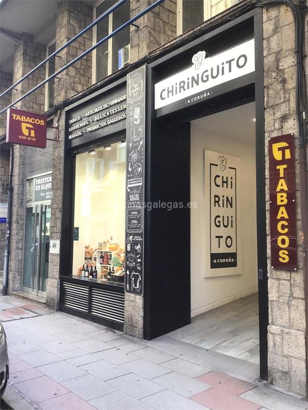 El Chiringuito es una tienda especializada en productos gourmet y de calidad. Vinos, mermeladas, ginebras, cestas gourmet, rincón take away. Venta de regalos, souvenirs y productos gallegos. Estanco, artículos del fumador, cajetillas y cartones de tabaco de variedad de marcas, encendedores y mecheros, tabaco de liar.