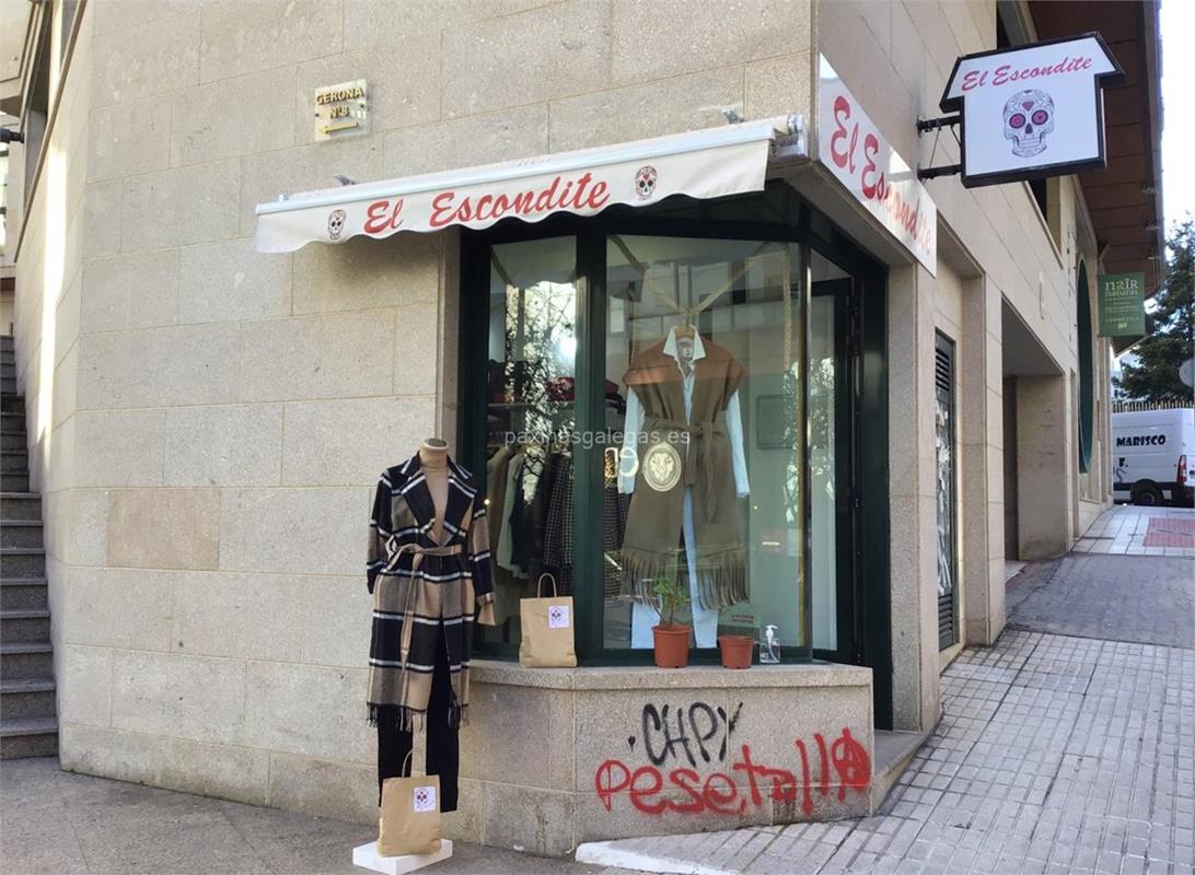 En esta ficha web podrá encontrar las actividades desarrolladas por El Escondite en Vigo asi como una descripción con la información más relevante. A mayores podrá consultar los otros 116 registros disponibles para tiendas de moda, ropa mujer en Vigo.