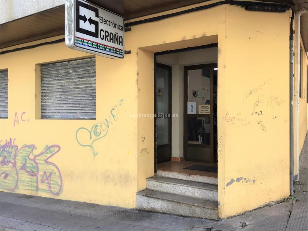 Además, en la parte visual la imagen principal identificativa de Electrónica Graña, el visualizador de streetview con la vista de la calle Ferrol, 9 Bajo - 36940 y sus cercanias.