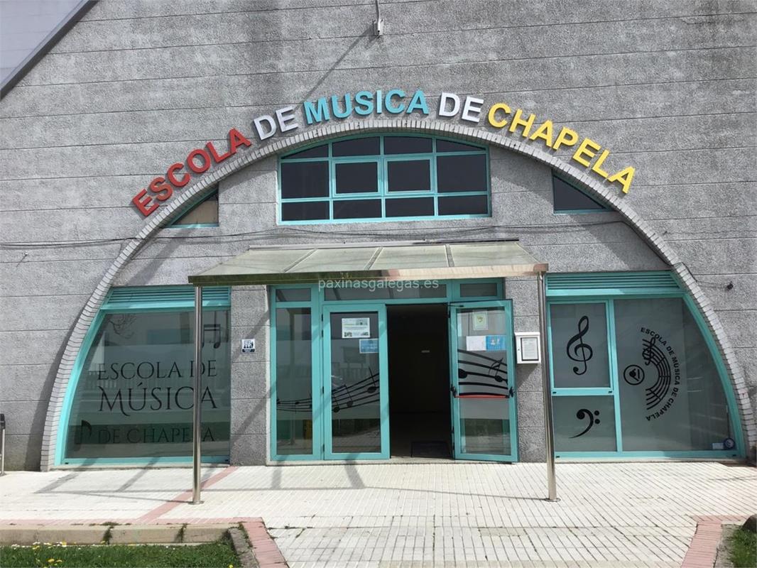 Además, en la parte visual la imagen principal identificativa de Escola de Música de Chapela, el visualizador de streetview con la vista de la calle Avda. Redondela, 17 - Chapela - 36320 y sus cercanias.