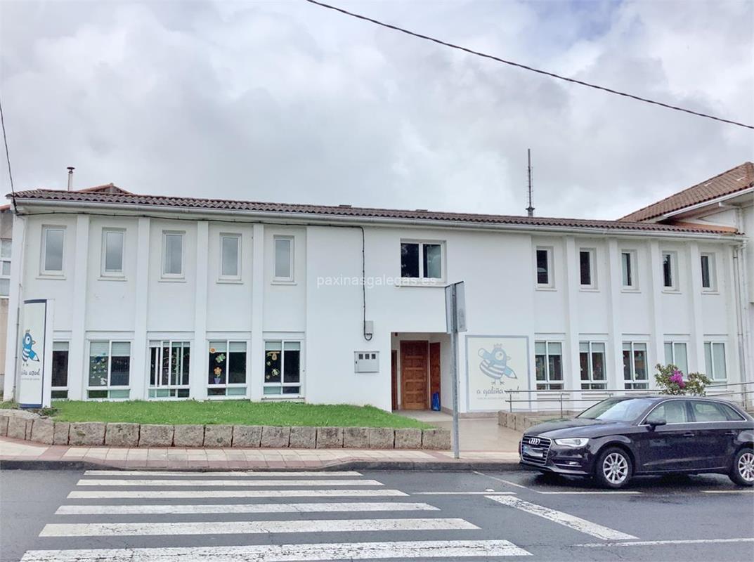 Además, en la parte visual la imagen principal identificativa de Escola Infantil de Zas (A Galiña Azul), el visualizador de streetview con la vista de la calle Trva. Santiago, 38 - 15850 y sus cercanias.