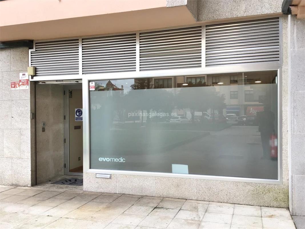 Además, en la parte visual la imagen principal identificativa de Evo Medic, el visualizador de streetview con la vista de la calle Johan Carballeira, 8 Bajo - 36208 y sus cercanias.