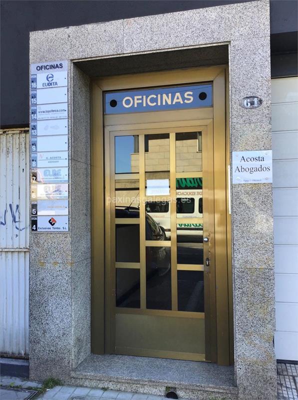 Tambien podrá encontrar el horario de atención apertura. Los datos de contacto: el teléfono de Exclusivas Tombo (principal) asi como la calle y dirección completa (Avda. Hispanidade, 61 1º Ofc. 4 - 36203) dentro de Vigo zona (O Castro, ) o la ubicación gps en el mapa (tambien como llegar) y el correo electrónico (email) para ponerse en contacto can Exclusivas Tombo a través de email.
