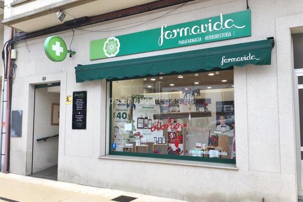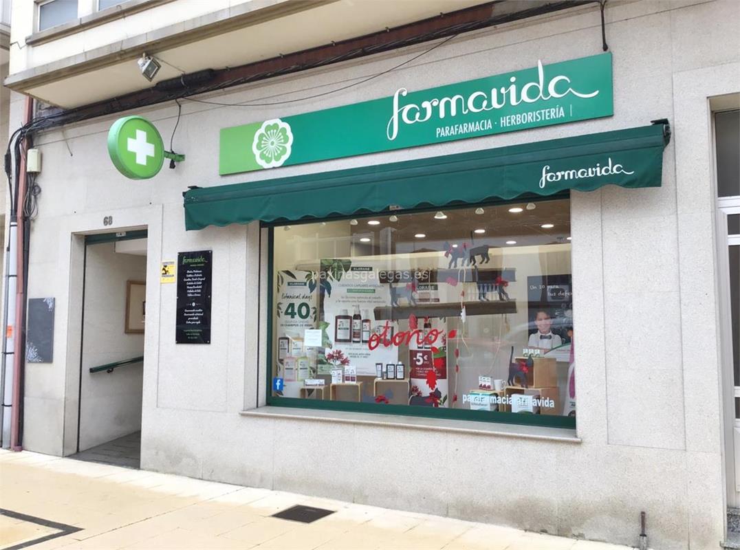 Además, en la parte visual la imagen principal identificativa de Farmavida, el visualizador de streetview con la vista de la calle Avda. de Galicia, 68 Bajo - 15320 y sus cercanias.